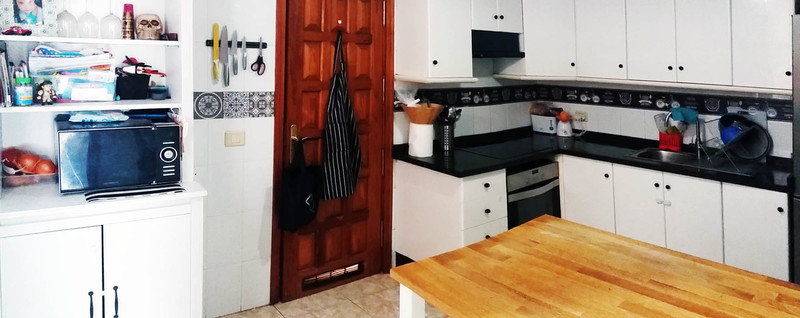 Downstairs: a large living room, an ample independent kitchen, 1 single bedroom with access to the terrace, a toilet on the ground floor, and a large patio and garden surrounding the whole house. There is also a bbq area and parking place inside the gate.